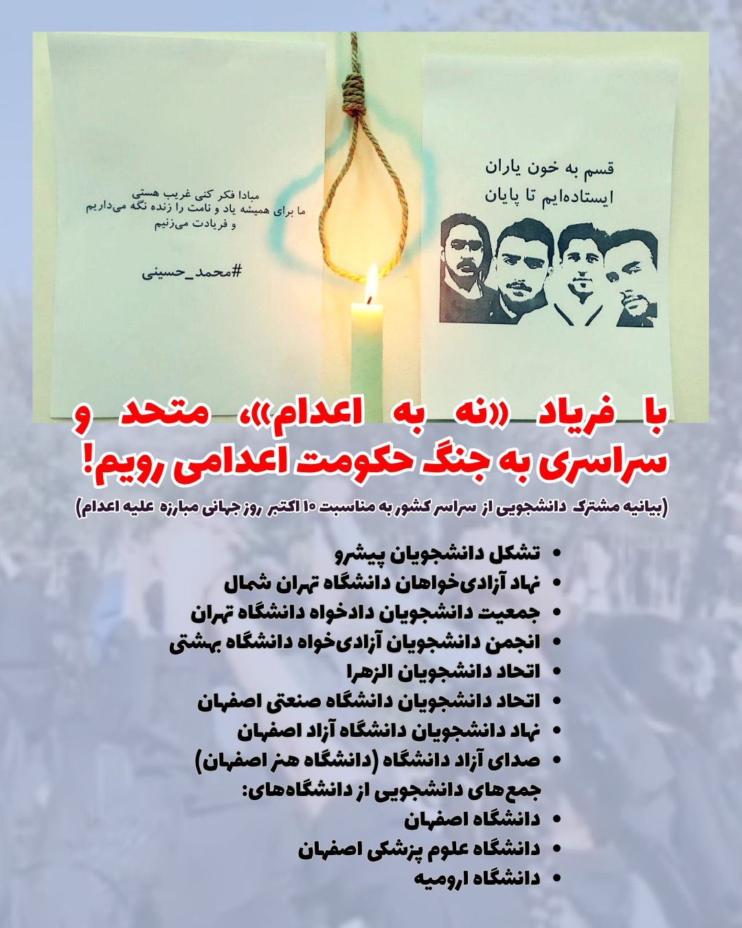 We, students from across the country, emphasize that a more organized and nationwide struggle against the death penalty is one of our focuses on the path of overthrowing the Islamic Republic.