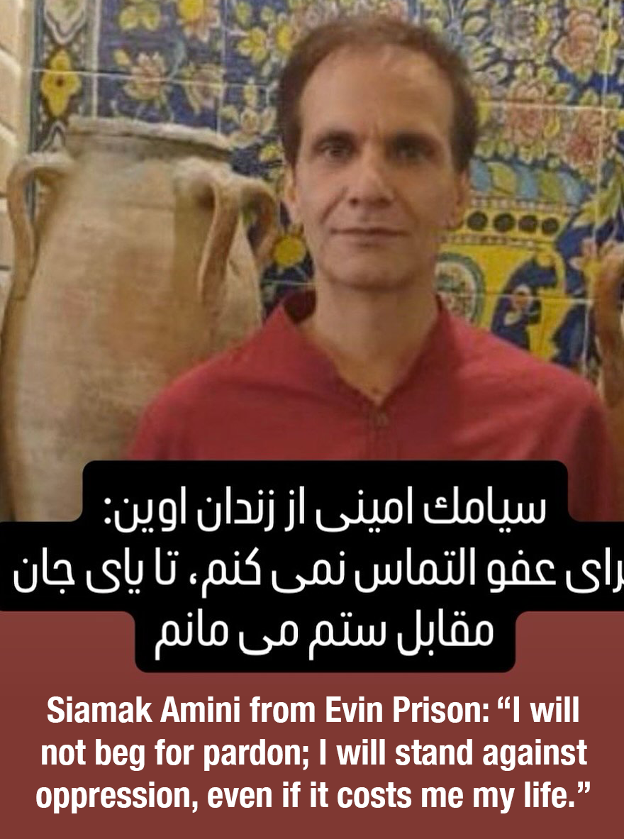 Political Prisoner Siamak Amini from Evin Prison: “I will stand against oppression, even if it costs me my life”